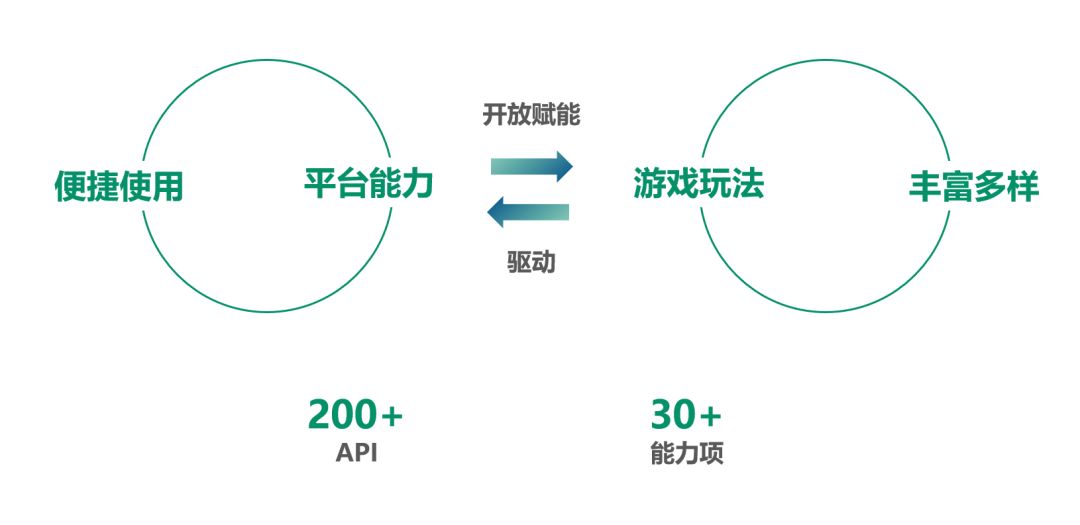 截至目前,小游戏已开放关系链、分包加载、防沉迷、游戏圈等30多个能力,以及200多个API接口,降低开发与运营的门槛,从而打造去中心化的平台。