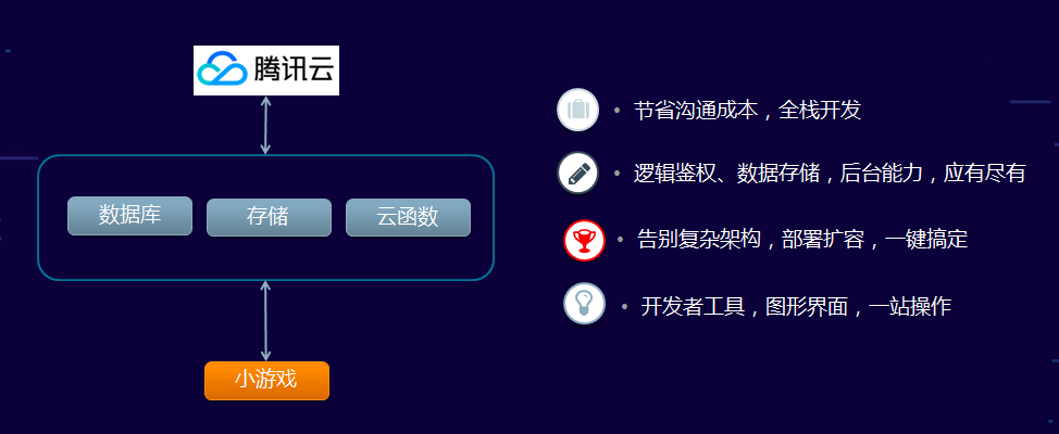 这样的服务托管在腾讯云服务内,小游戏开发者无需关注服务部署的复杂性,就可以快速搭建后端业务的原型。
