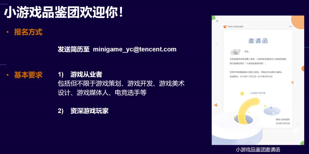 申请“创意鼓励计划”的小游戏,在通过线上运营概况复核后,还得过品鉴团这道“坎儿”,才能成为创意小游戏并享受相关的鼓励内容。