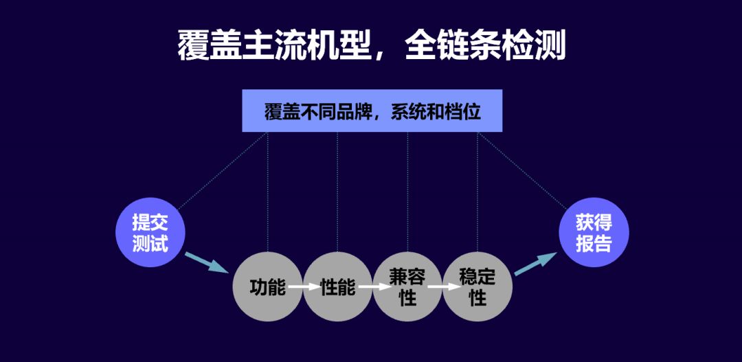测试云服务提供的机型会尽可能覆盖不同的品牌、系统和档位,基于硬件基础和软件技术的融合,实现全链路的测试覆盖。